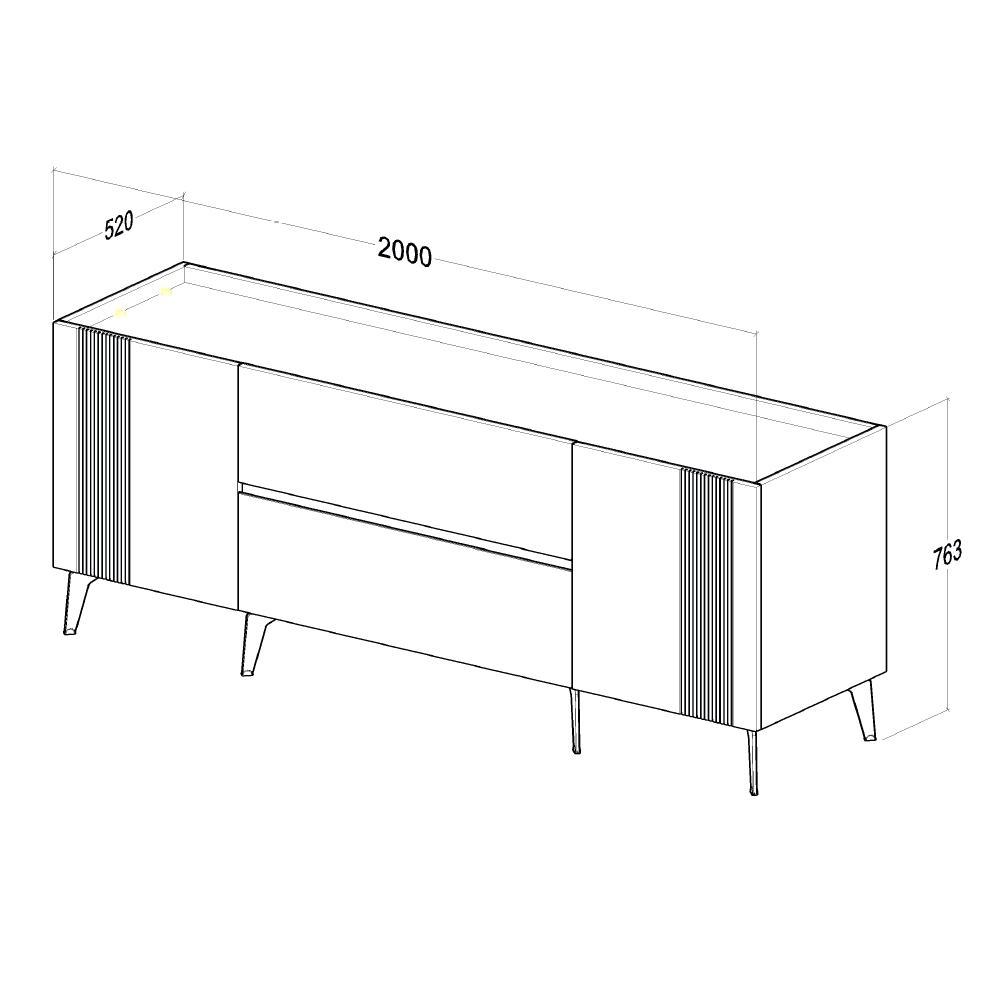 La cómoda está equipada con cajones de cierre suave y bisagras de cierre suave, que ofrecen un uso cómodo y silencioso. Además, las estables patas metálicas completan el aspecto contemporáneo y garantizan una larga durabilidad.