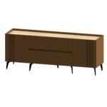 Elegante cómoda de salón con encimera chapada en roble y patas metálicas
